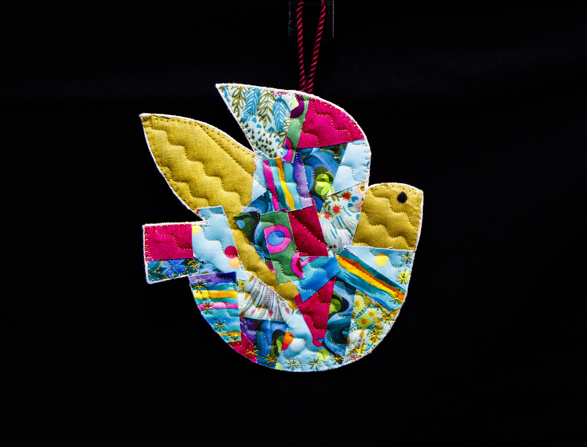 I create small, handmade items, larger fabric installations, and quilted projects. Years of sitting at my kids’ soccer games, riding lessons, and cross country meets provided moments in time to stitch away. At this phase of my life, I’m making space for deeper exploration of my creativity and enjoy the contemplative nature of art through hand and machine stitching and fabric collage.