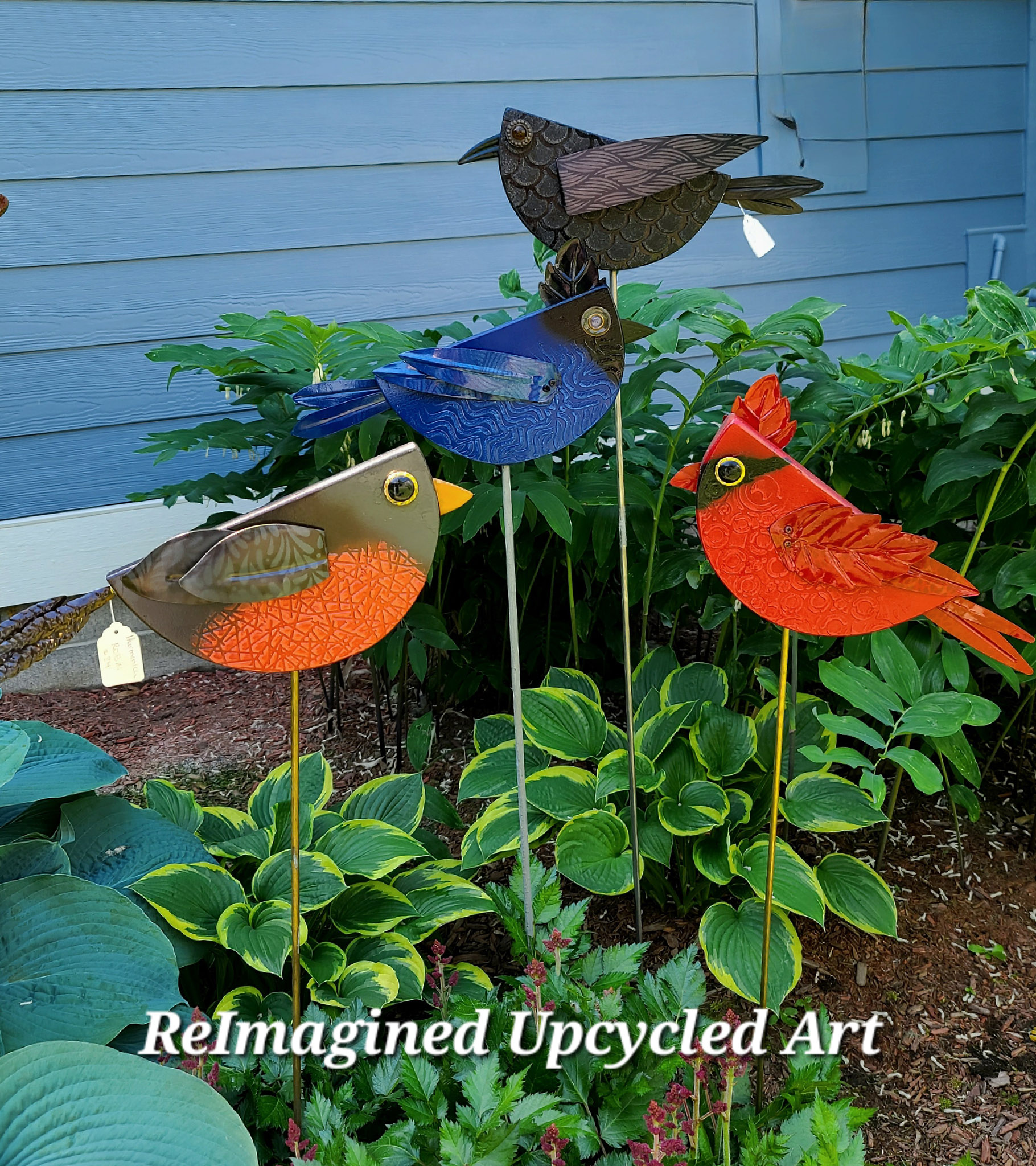 ReImagined is the Upcycled Art concept of Jen Parker, a lifelong Bellingham native. Voted ‘Best of the Northwest’ for the last 5 years, these whimsical, one-of-a-kind Art pieces are created with locally purchased salvaged wood and materials. Each piece is handmade and truly unique. The texture application on the larger pieces adds a sense of dimensionality and fun, while the smaller pieces have more delicate painted patterns suitable to their size. Each piece is sealed for the weather, making them an ideal way to add a touch of whimsy to your yard, home, or garden area. Once completed, they are named to match their personality.