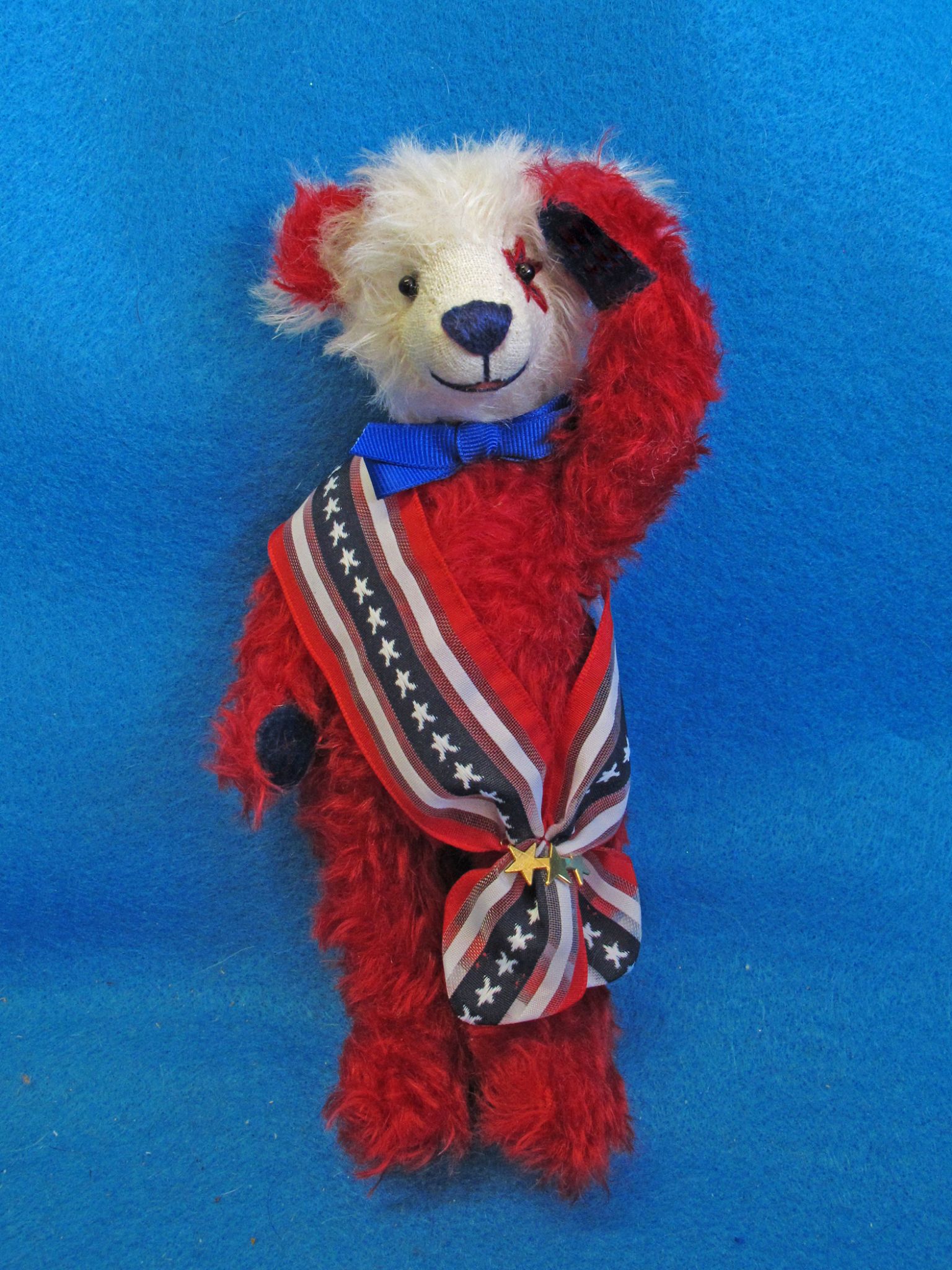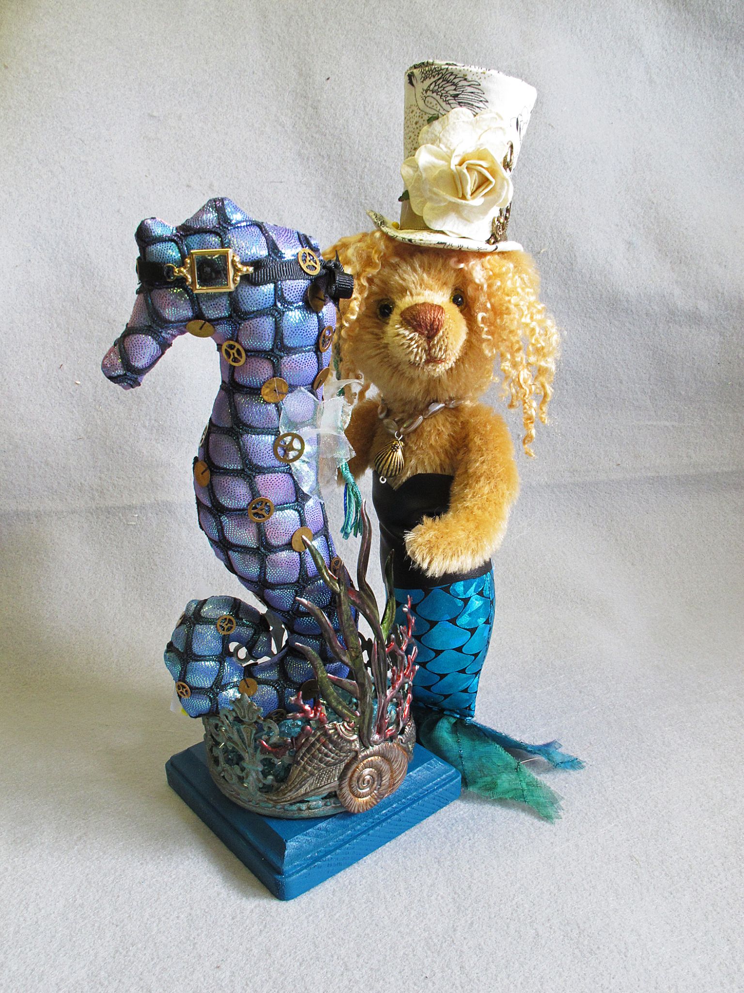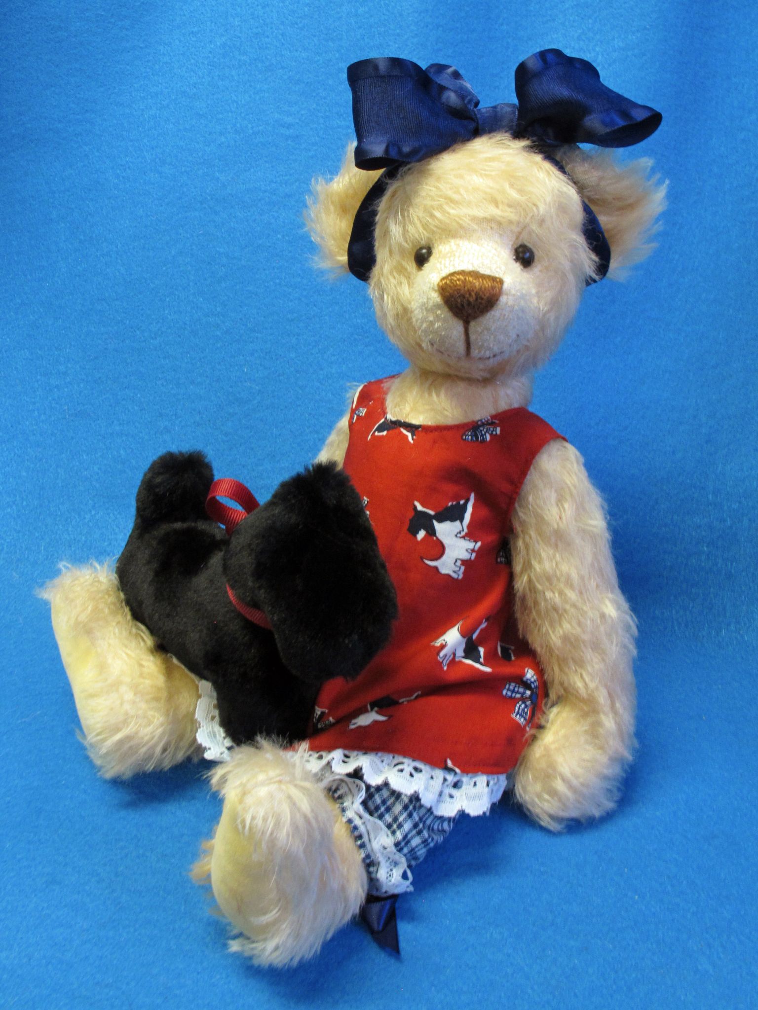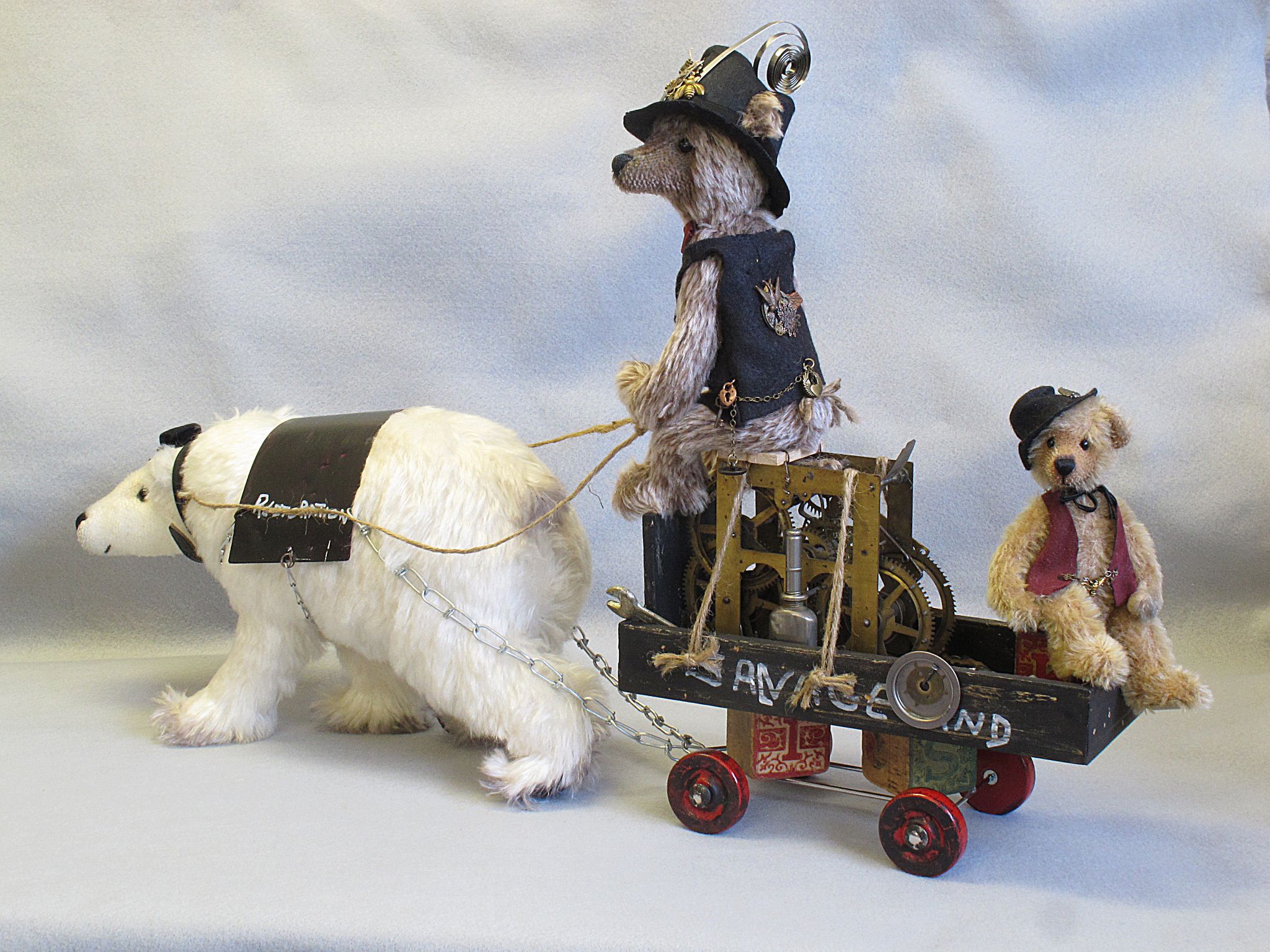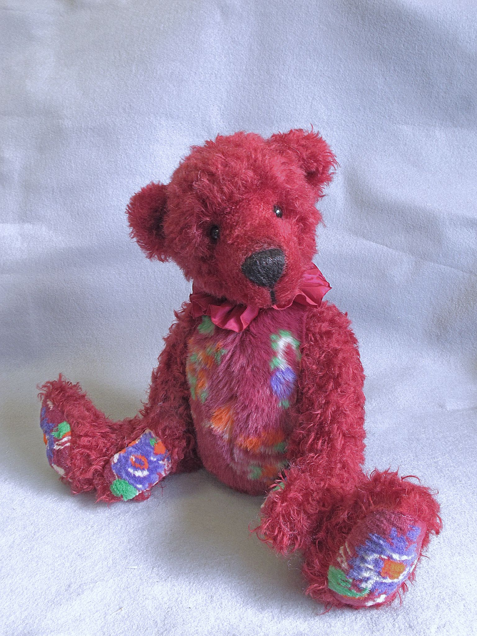 Pam uses top quality imported European mohair and plush fabrics, vintage lap robes, fantasy fabrics, etc. Most of her creations are jointed 5 ways; stuffed with polyester; have glass or antique shoe button eyes; have glass and plastic beads for weight; contain one or more armatures. Her work has been featured in Teddy Bear Review, Teddy Bears & Friends, Teddy Bear Times & Friends and other publications.